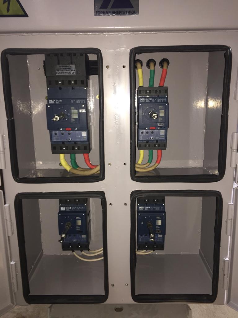 Комплектная трансформаторная подстанция КТП-РН-400/6/0,4-УХЛ5, многофидерная, в составе: РУВНН - выключатель автогазовый ВНА-10/630-П-з-И2 УХЛ2; РУНН - входной выключатель BH630SE305-630A, отходящие BH630NE305- 400А, BD250NE305-250A, BD250NE305-100A – 2 шт., производства OEZ. (Д х Ш х В мм, 3410 х 1030 х 1370, вес 2900 кг.) (Подстанция выполнена по техническому заданию ПАО «Комбинат Магнезит»)