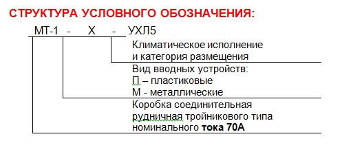 Коробки соединительные рудничные тройникового типа МТ-1   предназначены для  соединения и разветвления гибких, бронированных и небронированных кабелей и проводов с медными или алюминиевыми жилами в сетях с изолированной нейтралью  напряжением до 660 В  и  в сетях постоянного тока напряжением до 440В на предприятиях горнорудной промышленности, минерально-сырьевого комплекса и строительной  индустрии  и  других  предприятиях не  опасных по взрыву газа и пыли где допускается применение электрооборудования в исполнении РН-1.